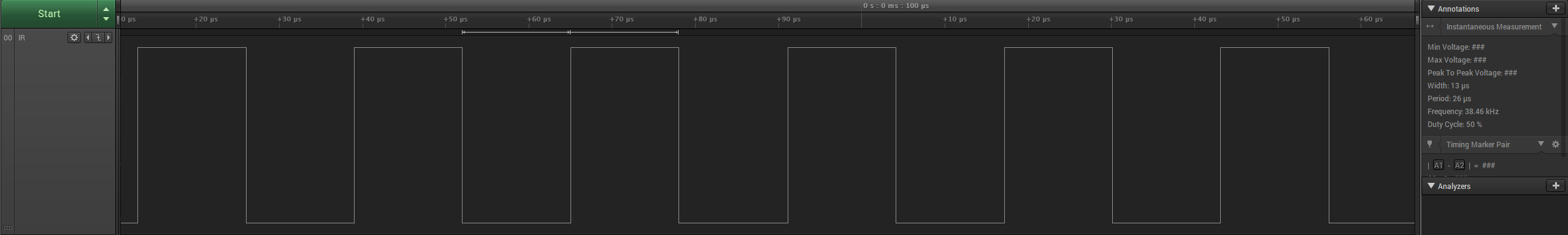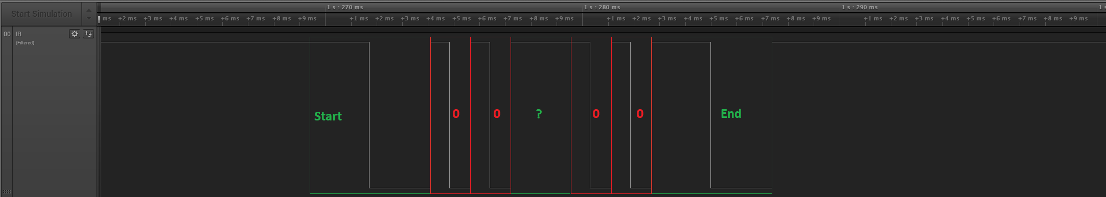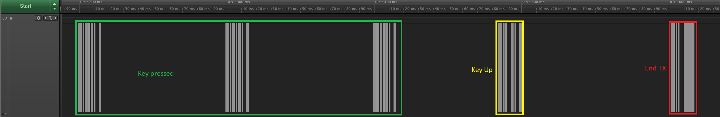 In the picture above, we can see where the transmission started and how long the PIN was pulled either HIGH or LOW.