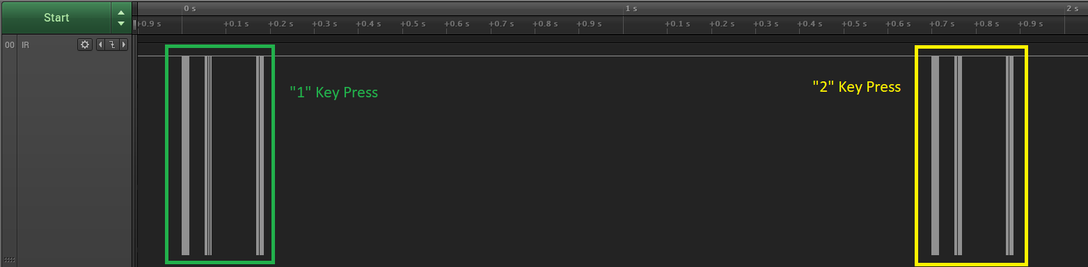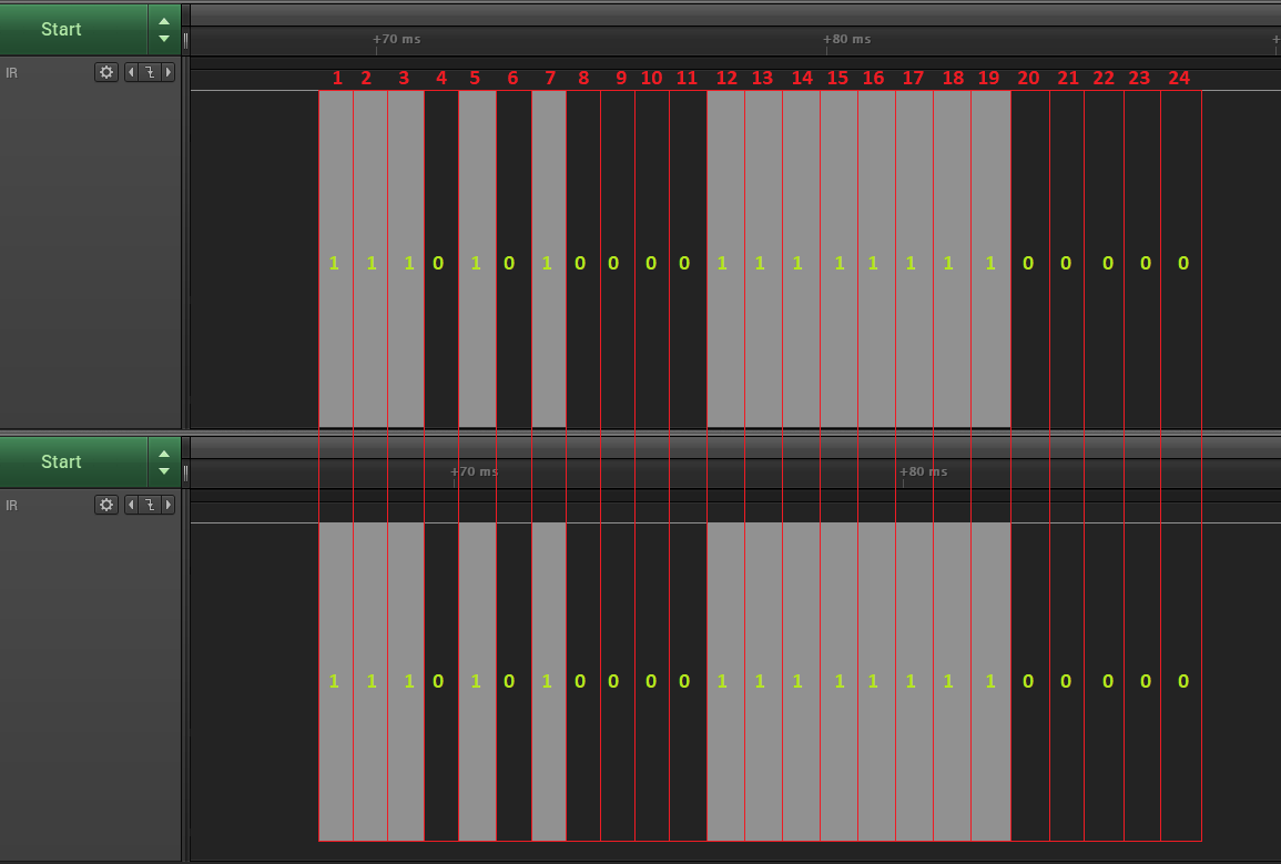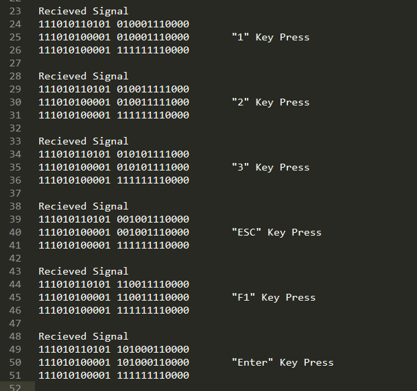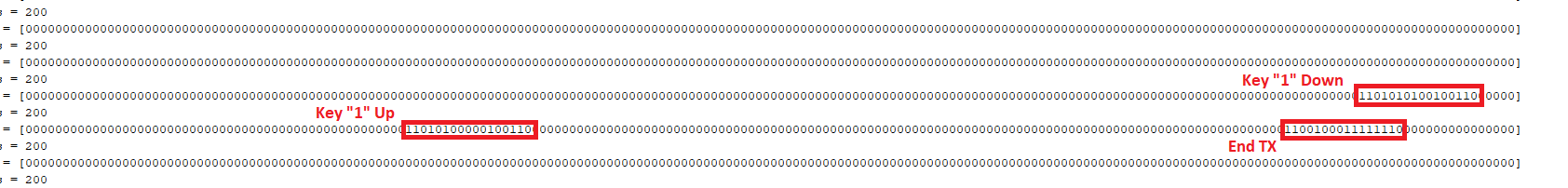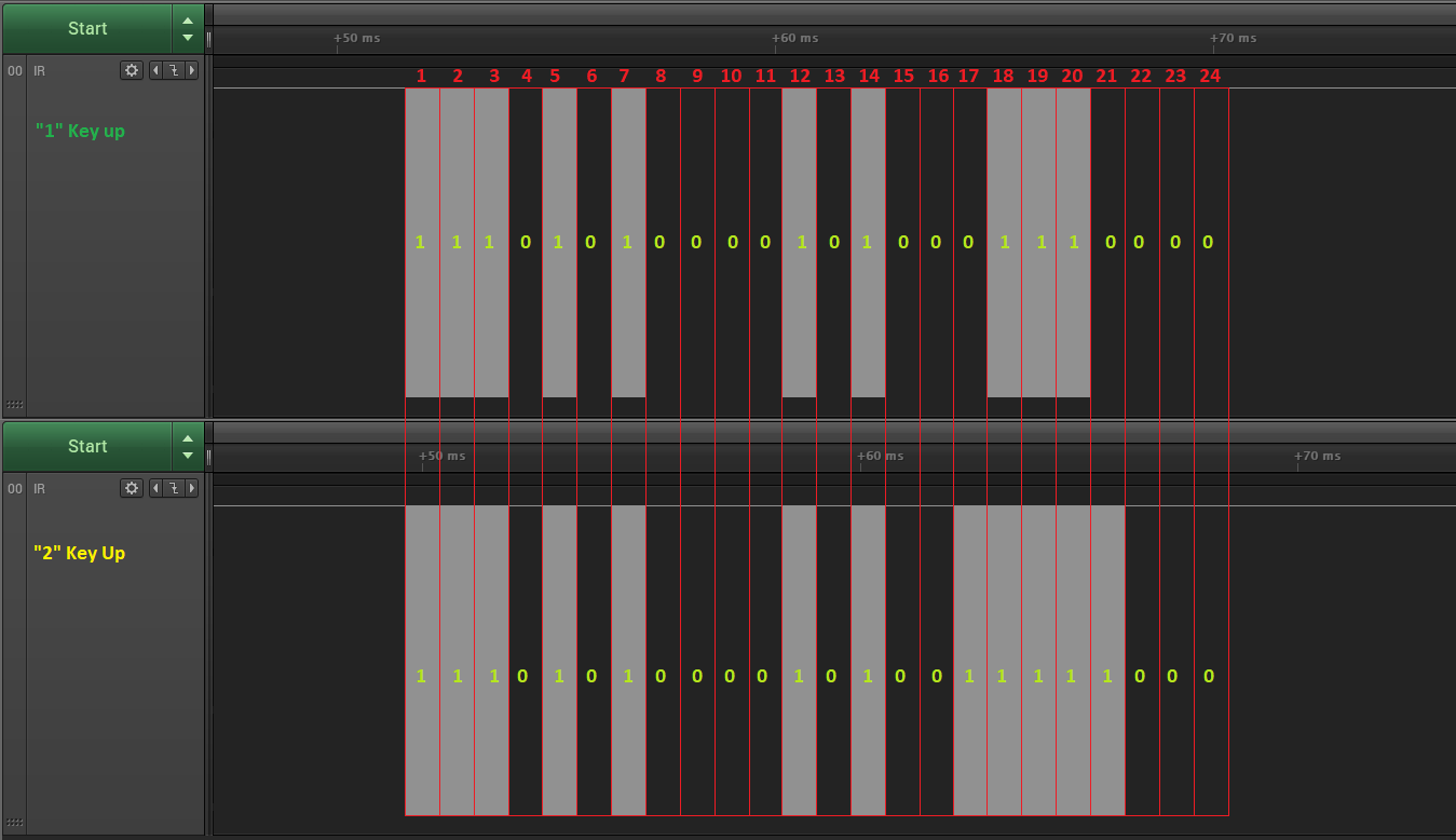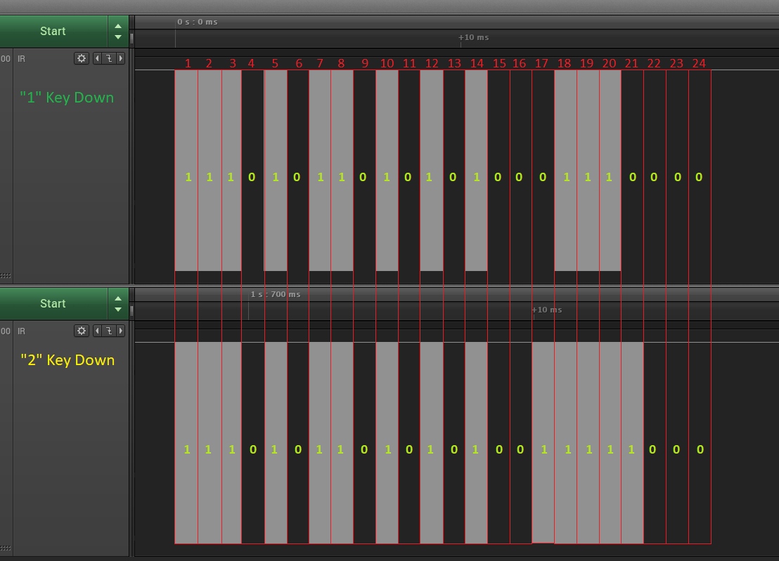 This let me print out each key press in binary and see the IR signal as i saw it on the probe!