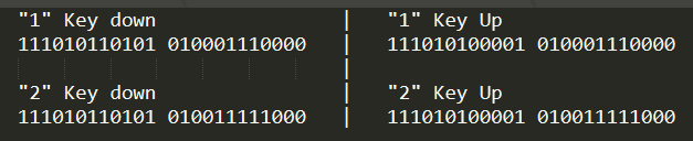 Lets look at the Key Down data transmissions of each key and try to work out what the bits are.
