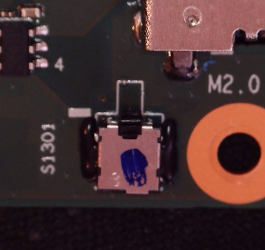 Once the laptop was opened, one of the first things noticed was a physical tamper switch on the internal hardware. These switches are sometimes configured to prevent the device from booting if the case has been opened, acting as a basic physical intrusion detection mechanism.